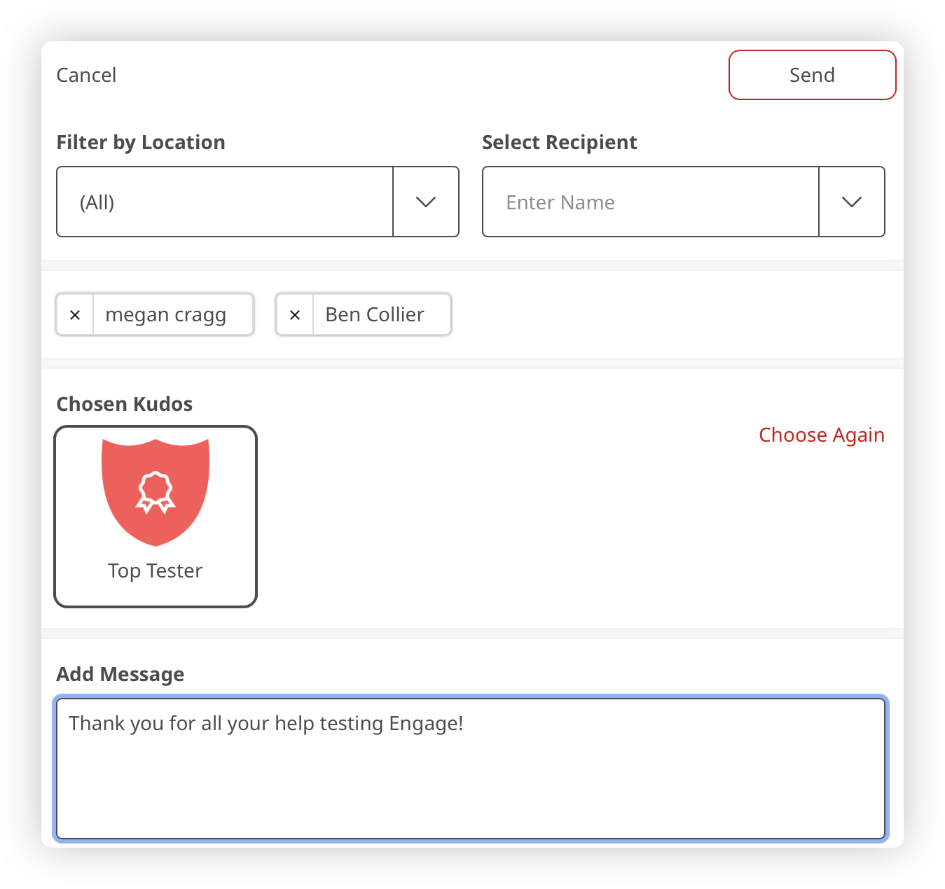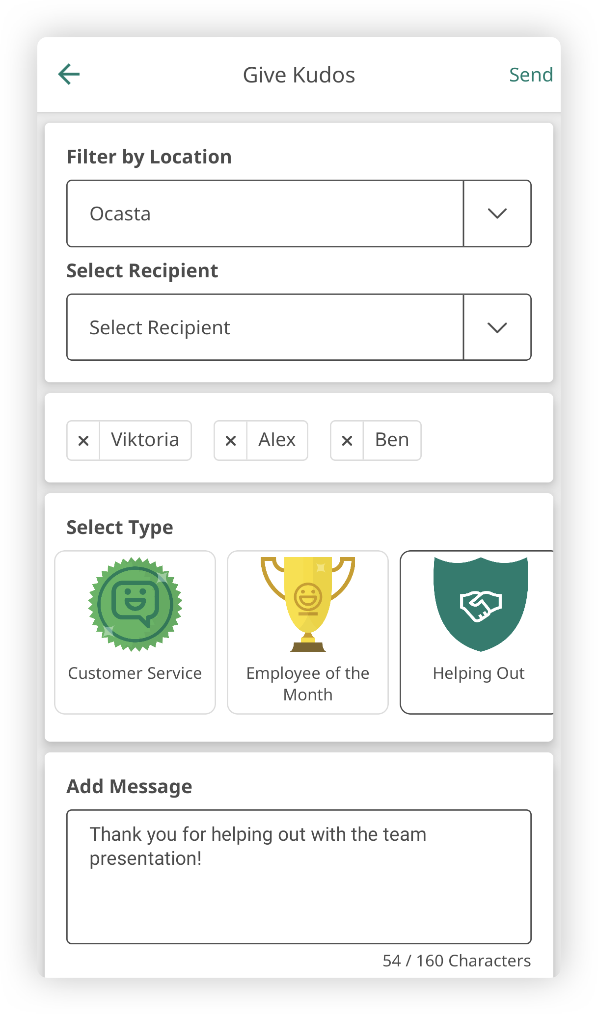 Add an additional message to explain in more detail why you have awarded them the Kudos.