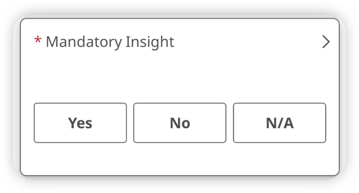 When completing a review you might come across insights which are mandatory. These will be indicated with a red asterisk. You won’t be able to submit a Review without completing the mandatory insights.