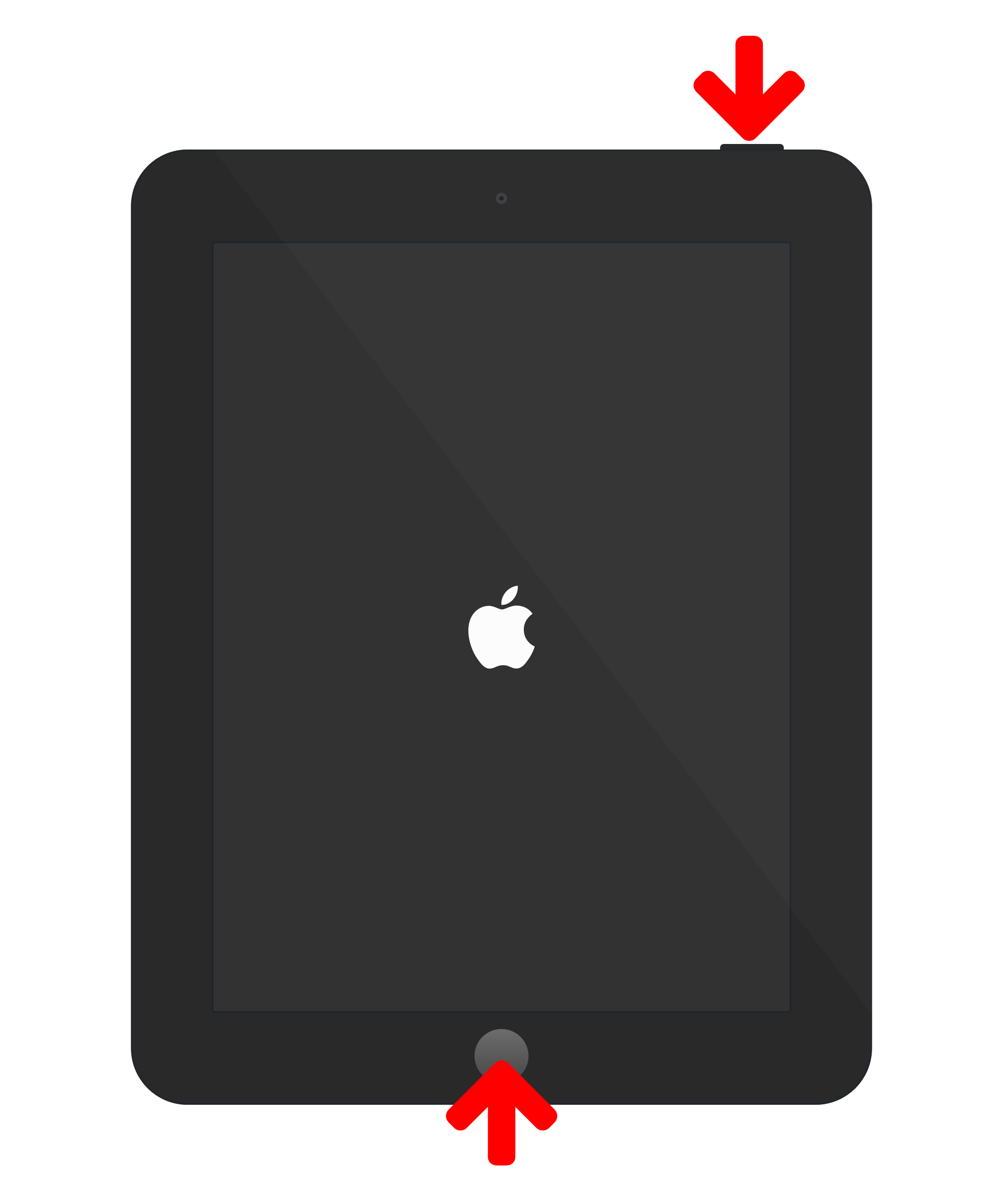 2. Hold down both the Sleep/Wake button (found on top of the iPad or older iPhones, newer iPhone's find it on the right), and the Home button for at least 10 seconds until you see the Apple logo.