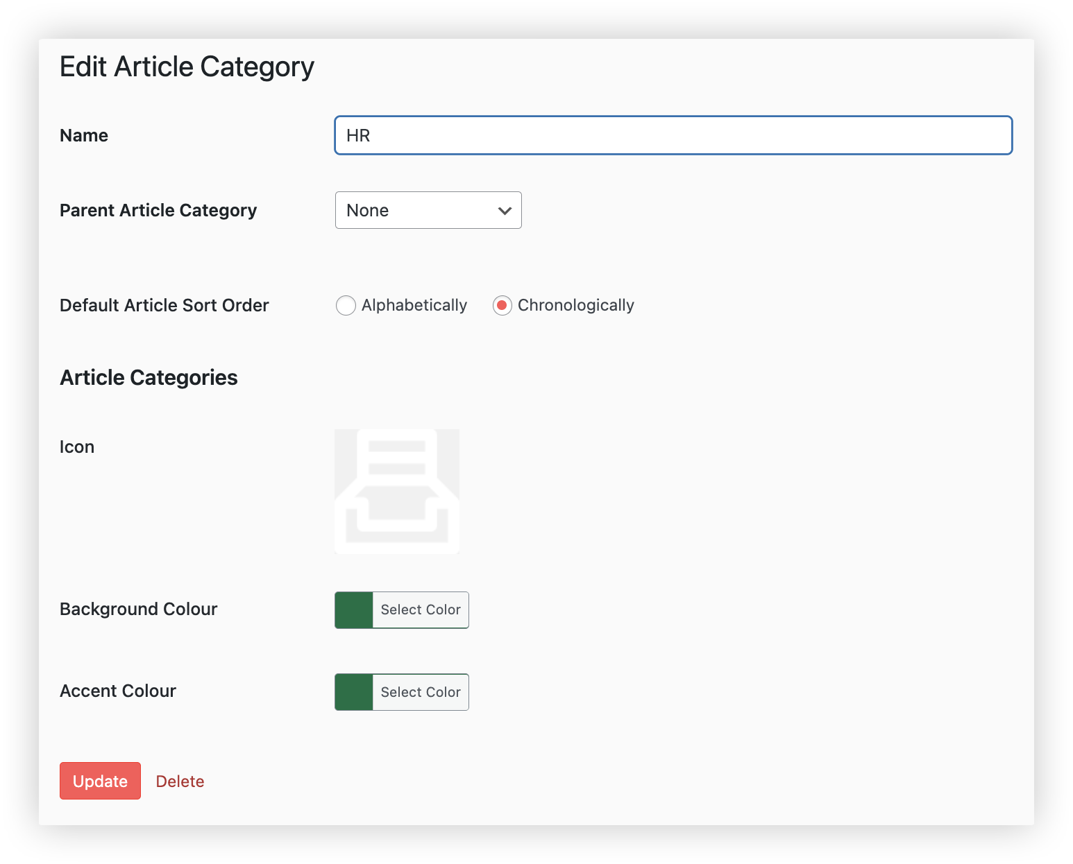 The icon, title and colour of these tiles is set on the article category itself.