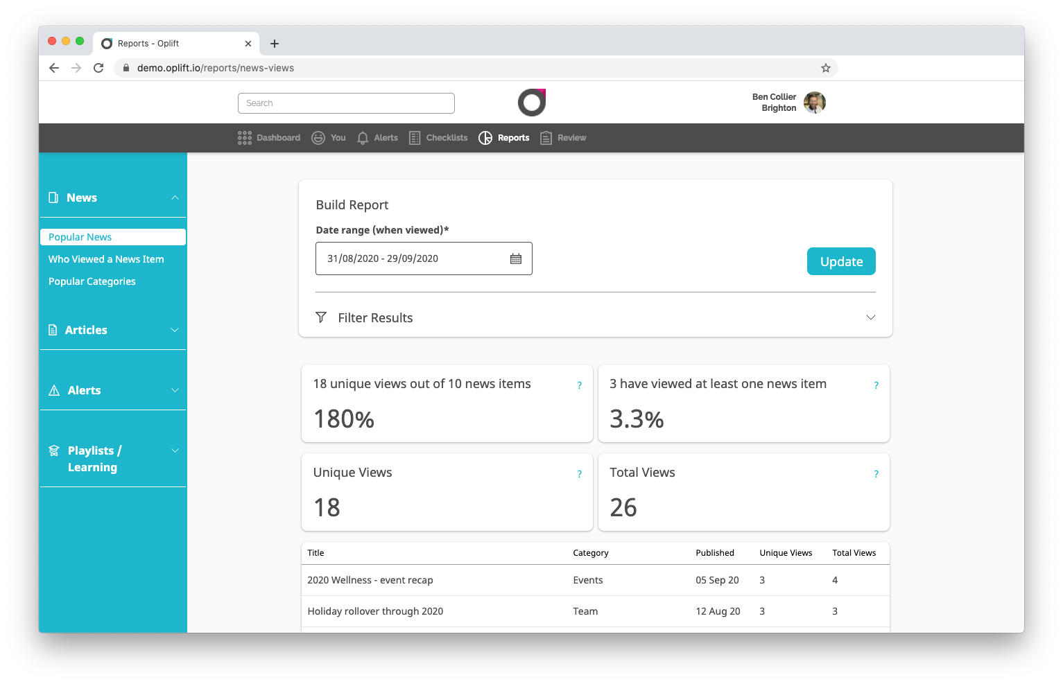The September release of Oplift contains a brand new, and much requested, reporting update that's available on the web.