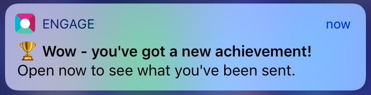 Another new feature is that users will be notified when they have been awarded an achievement. Again, they will receive both an email and a push message telling them that they have been given an achievement, with instructions on how to view it.