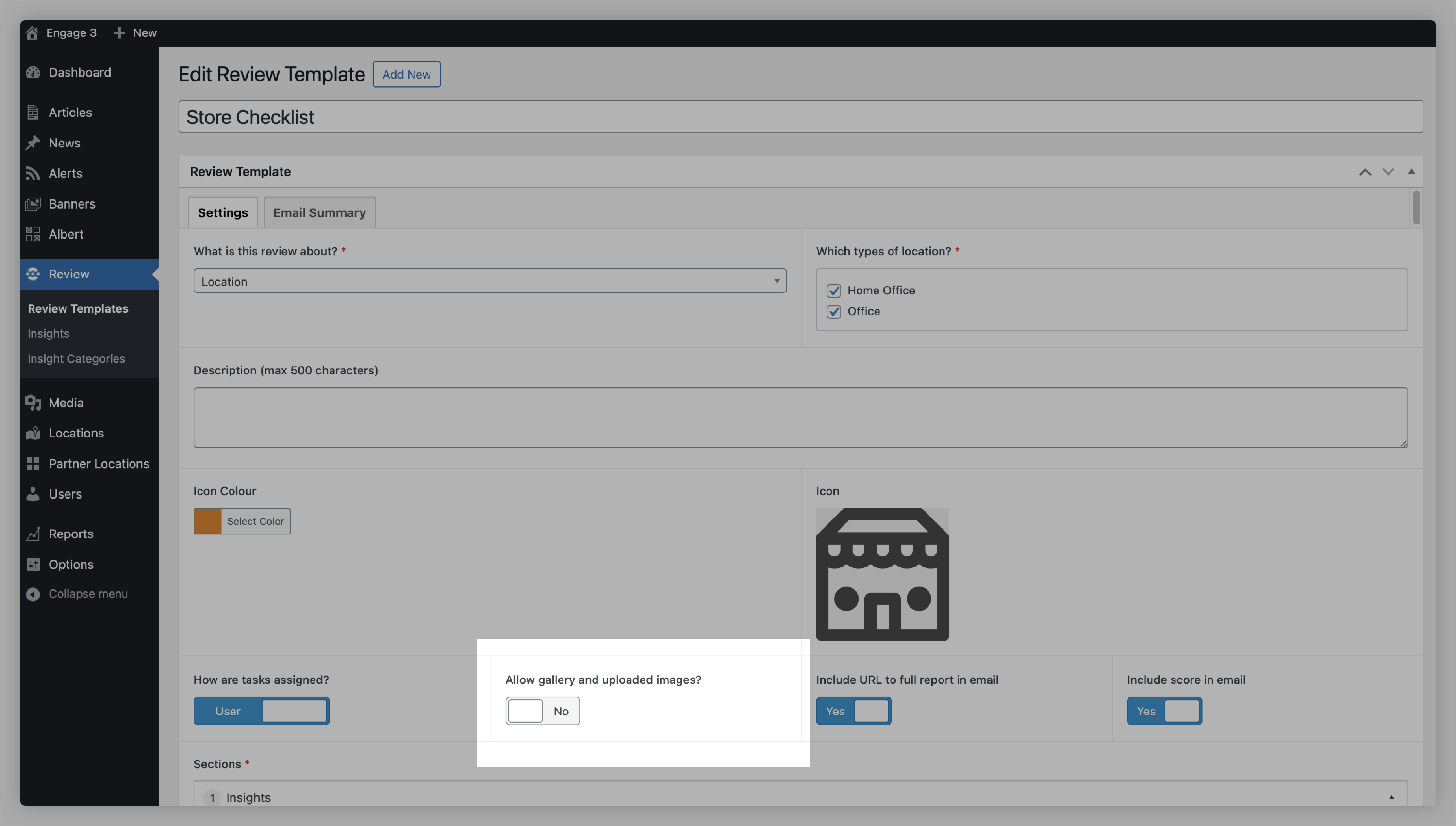 Below the icon settings, you'll find the option 'Allow gallery and uploaded images?'