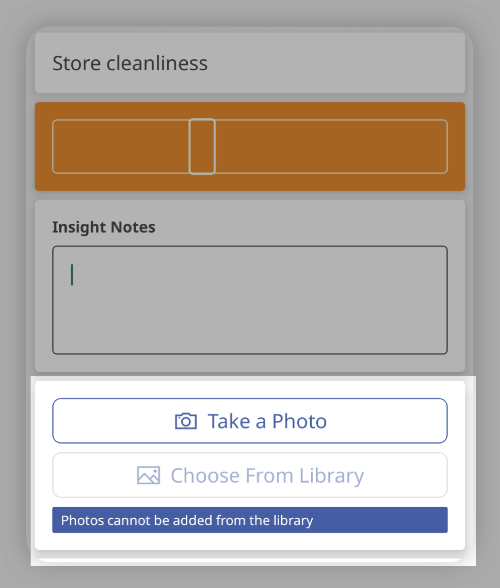 When this setting is enabled, users will only have the option to take a photo using their camera when they tap into an insight to upload a photo.