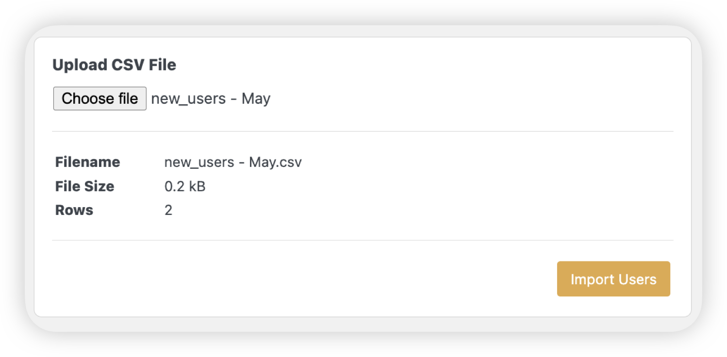 To use it, upload a CSV file with the users you want to add or update. Just click on "Import Users" and follow the prompts to upload your file. Make sure the file follows the expected format for a successful import.
