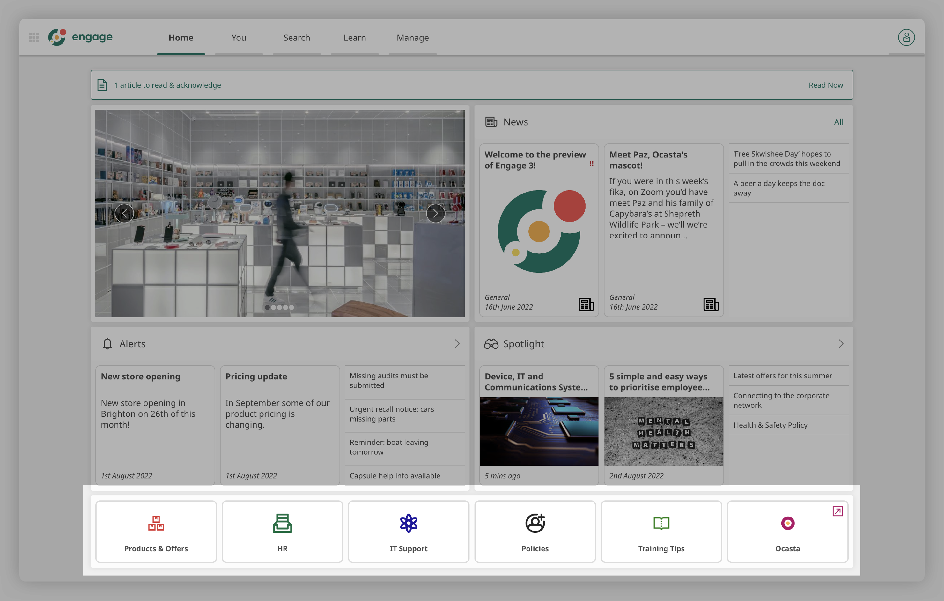 These are the tiles that will appear on your Home screen, they are designed to categorise all of your articles and links making them easy to find. You can have parent article categories, web links, news and calendar tiles.
