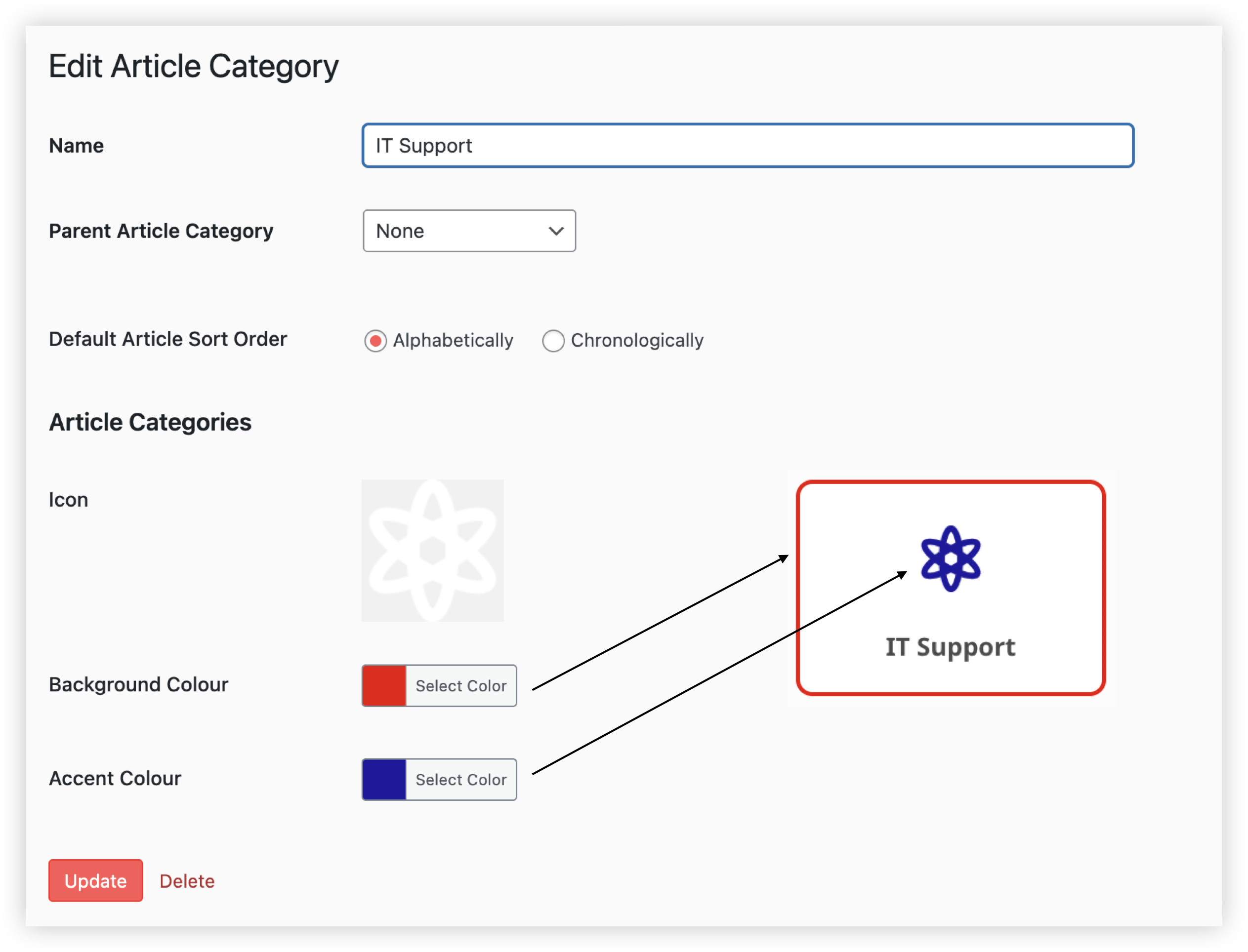 - Icon - upload an icon or image to represent this category. If you have uploaded an image set this colour to Clear.