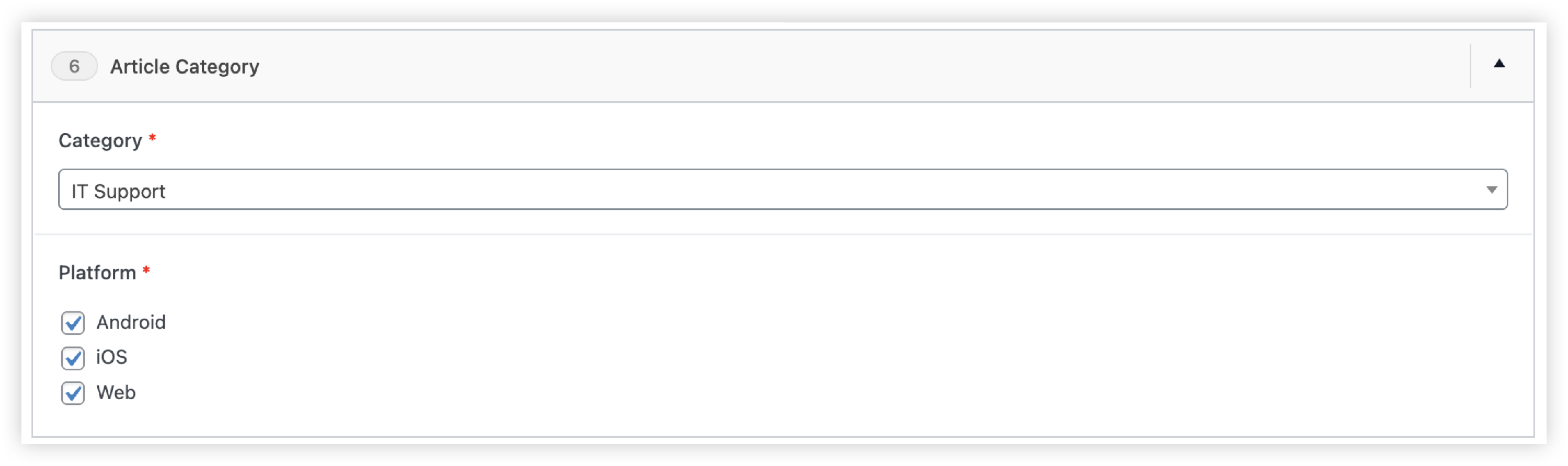 - Platform - select which platforms you would like these to show on, either Web, Android or iOS