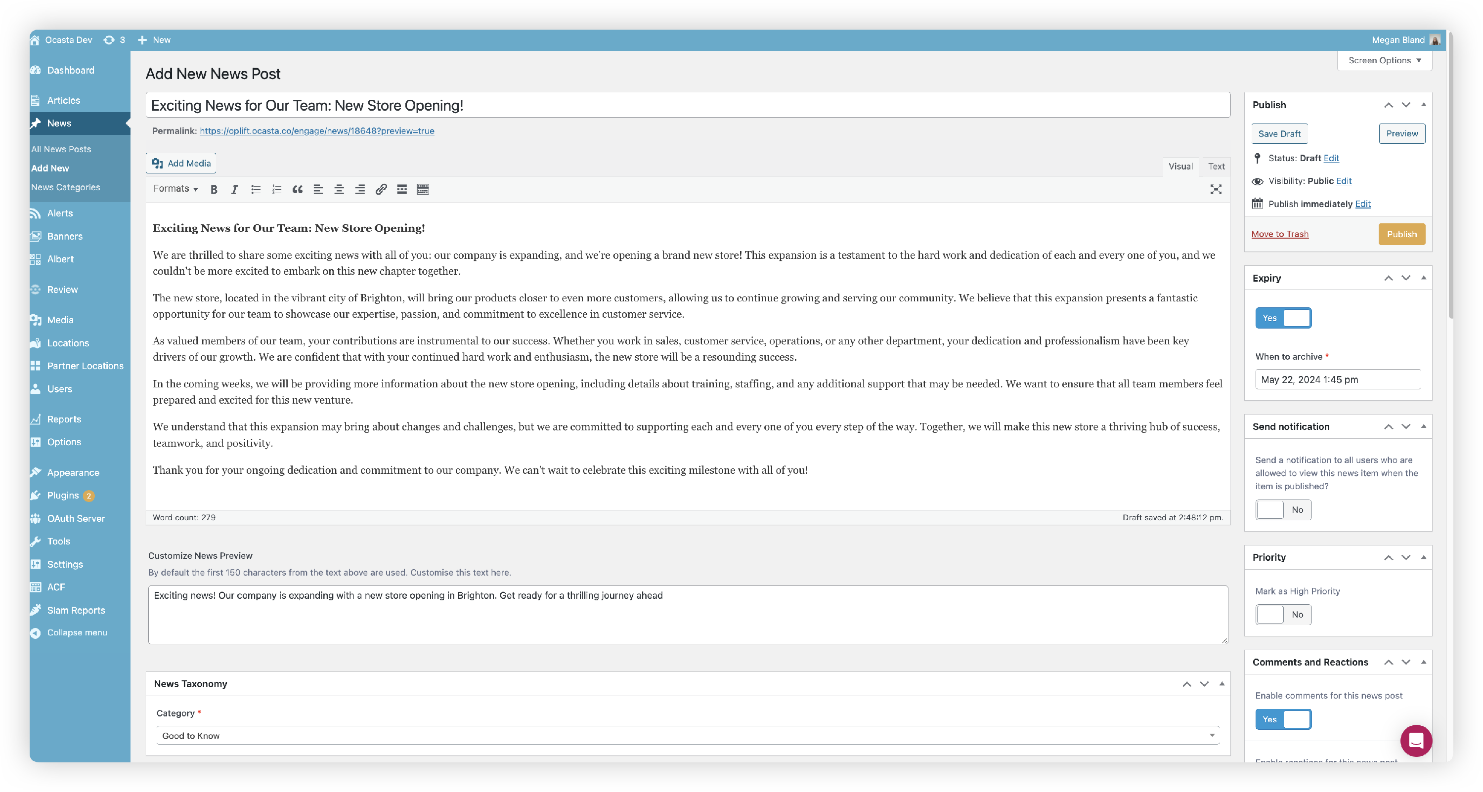 You can now select and edit the news post as you would normally, removing or adding anything you require.