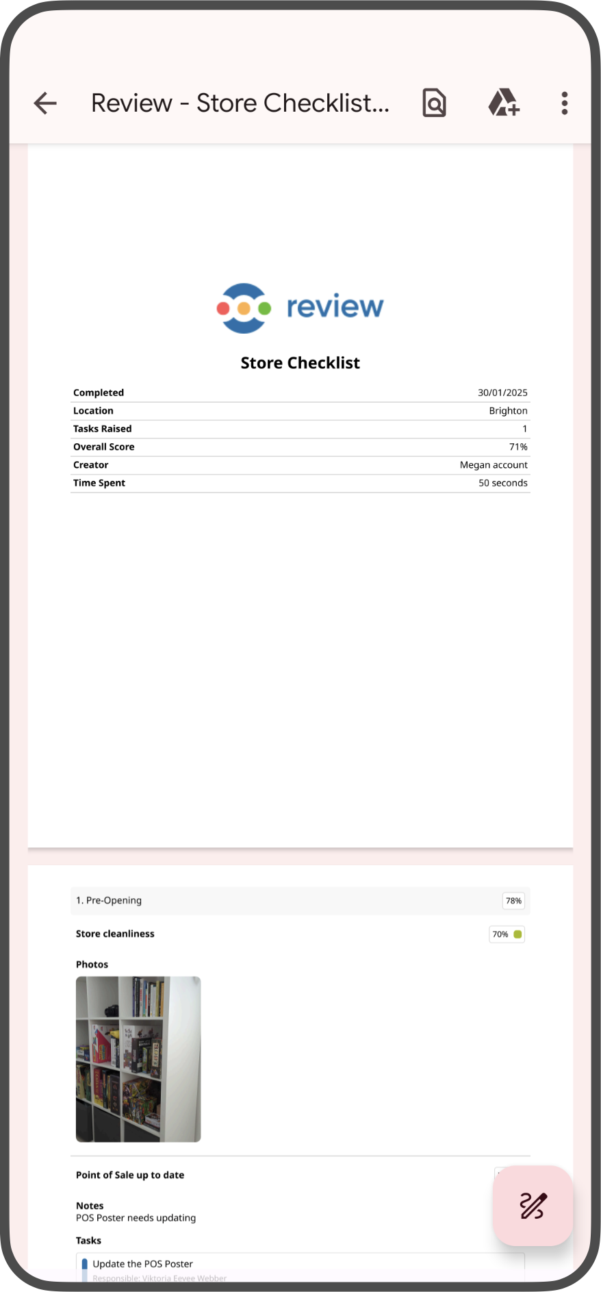 Once you’ve completed a review it will become available to view in the list of submitted reviews. Read more about How to submit a Review and where to find the list of completed Reviews on iOS, Android and the Web.
