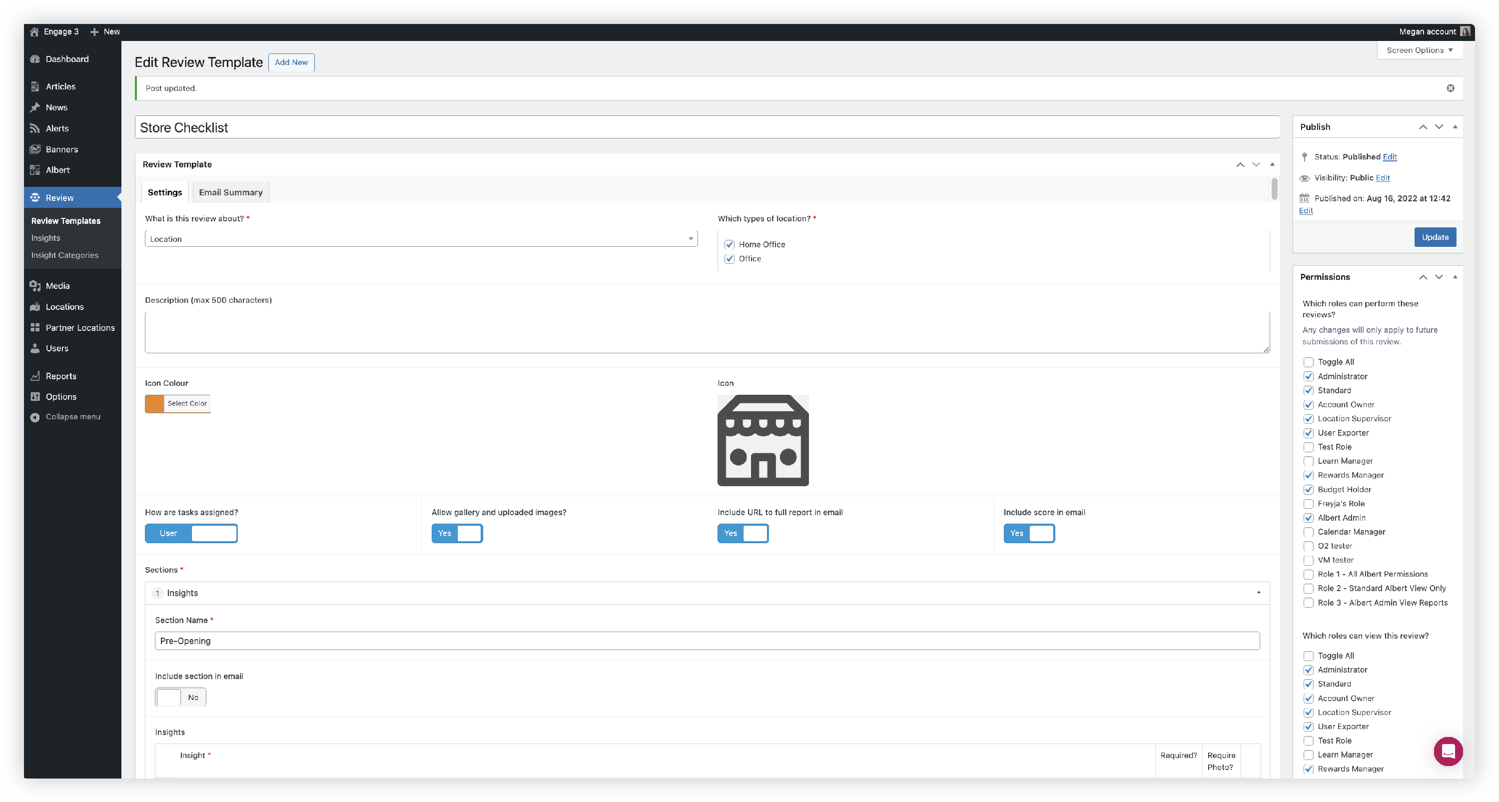 - Choose which roles can perform the review.