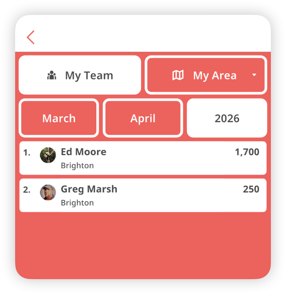 For users with roam permissions, granting access to multiple locations, an added feature is the dropdown menu labeled "Select Area." This feature enables users to further filter the leaderboard, allowing a focused view on a specific area or region.