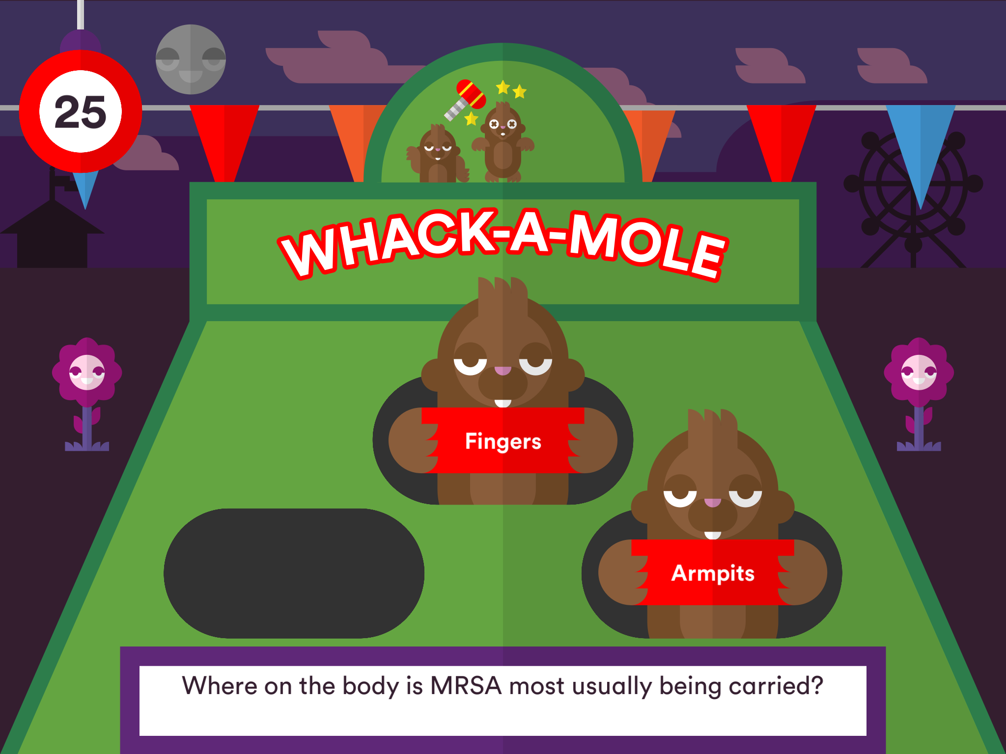 All other question types except Whack a Mole follow follow the same format, with three possible answers.