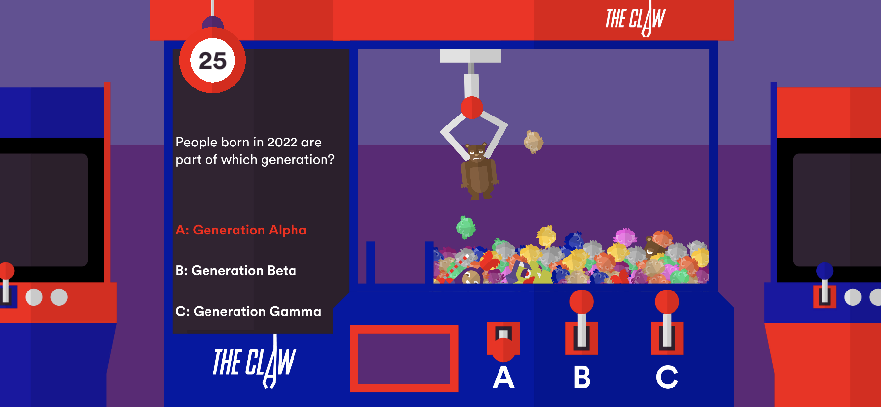 Press A, B, or C and see the grabber move, itโll try and pick up the prize, grabbing it if you got it right. ๐น
