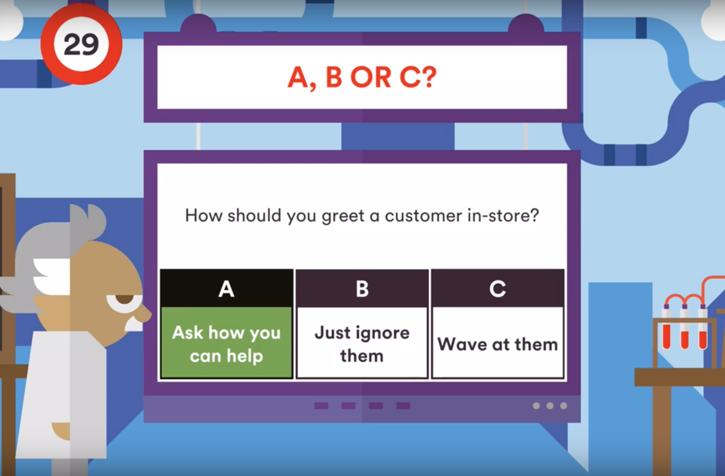 Albert questions are different ways of your staff answering multiple choice questions about your business to test and improve their knowledge.