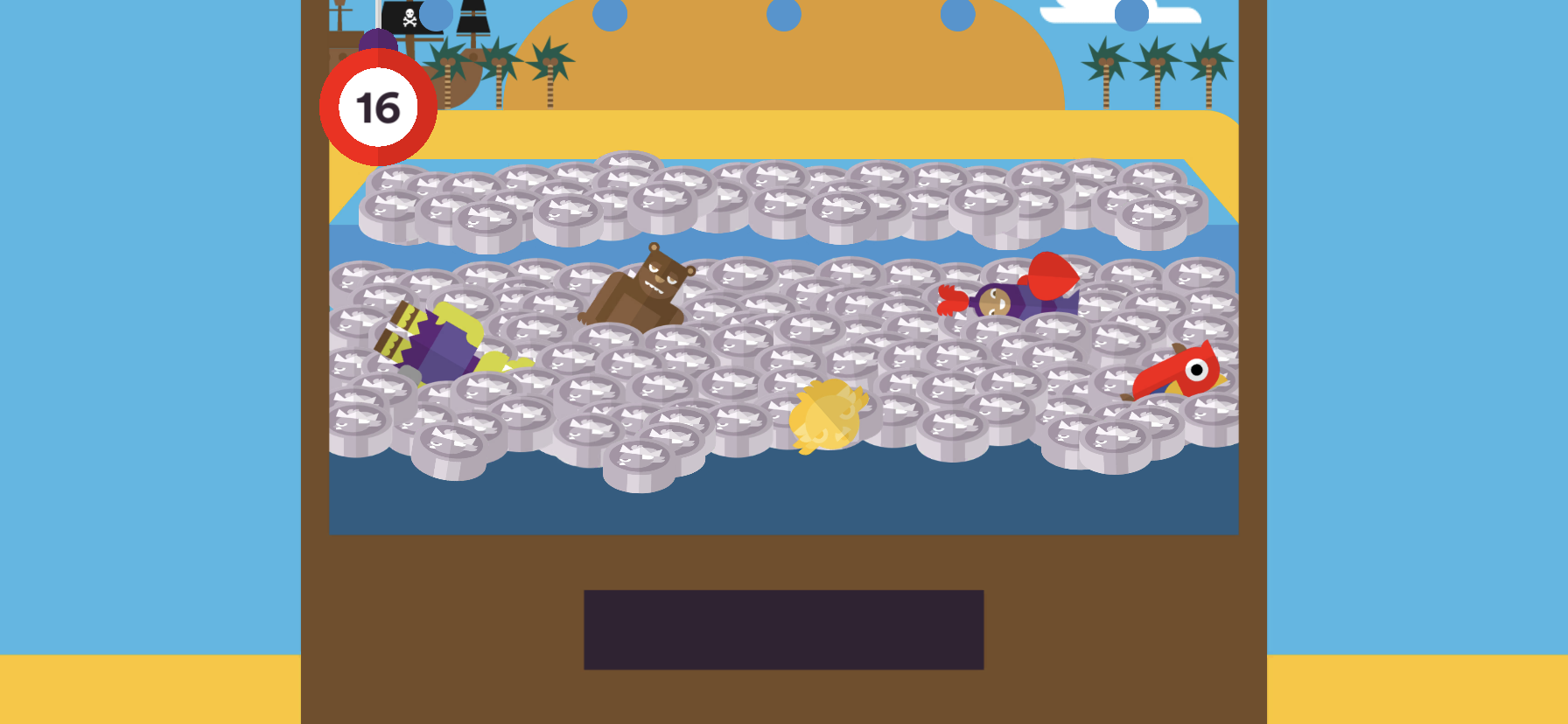 Shootout, Catapult, Standard (Albert's Lab), The Claw, Penny Pusher & Spin to win