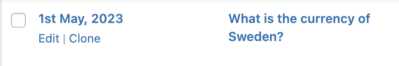 Tap Clone and the question will be duplicated. It will appear next to the original question in the list with the same title but it will have - Draft added to the end of the title.