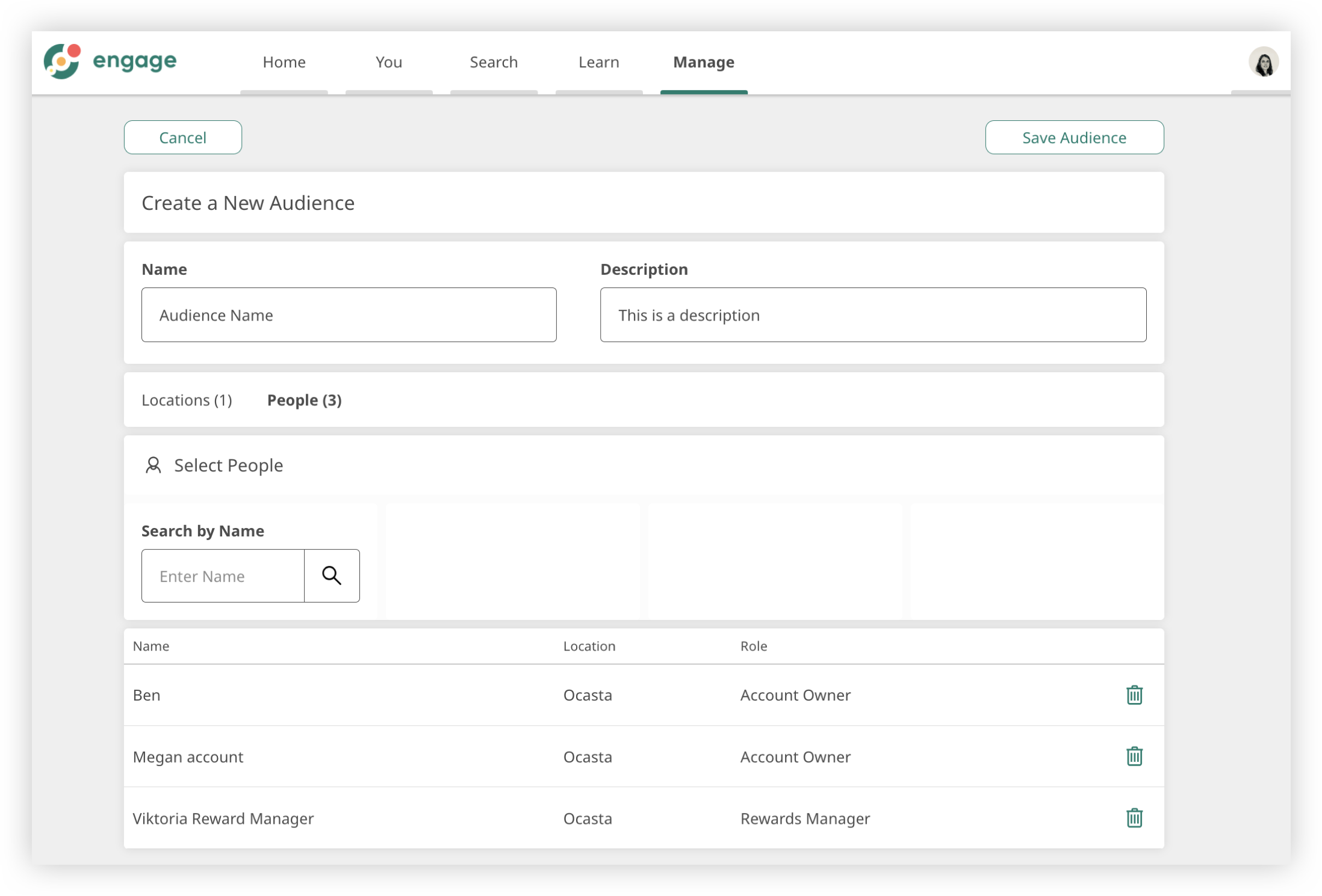 Audiences are a way to save targeting so you don't have to recreate it for every news item/article you want to apply it to. You’ll be able to save a number of locations, regions and/or individuals as an Audience. The Audience can then be used as a target for a news item or article.