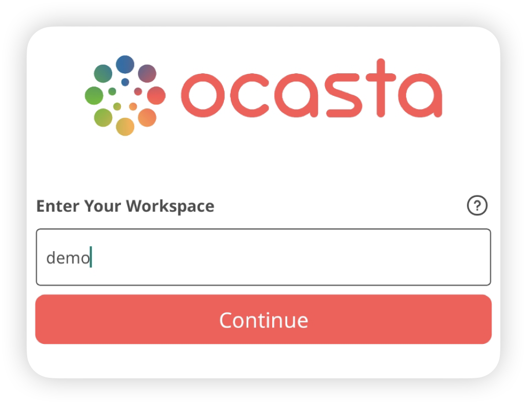 After downloading the app, you’ll be asked to enter your workspace. This tells Ocasta which organisation you’re signing in to.