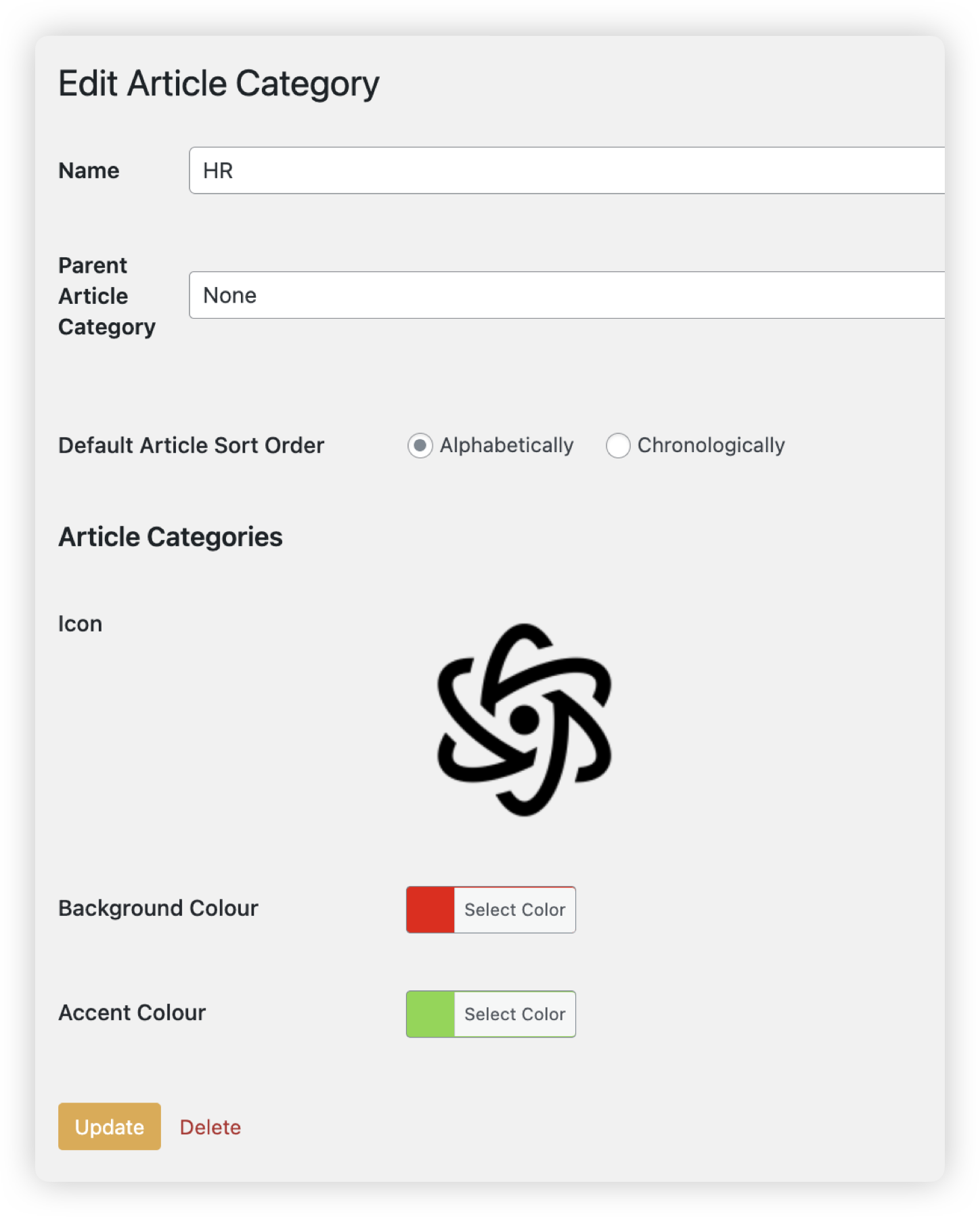 Accent Colour - If using and icon, not an image, this option will adjust the colour of the icon for the article category tile.