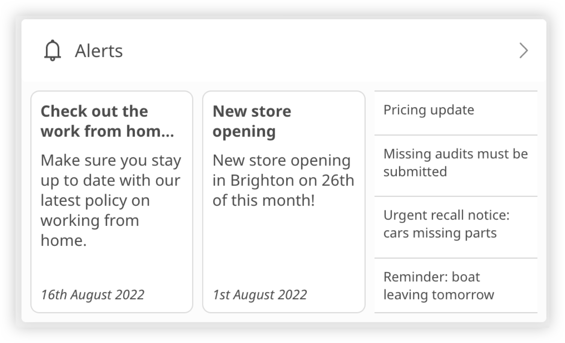 Alerts will be displayed in the Alerts section on the Home screen. You'll be able to see the number of unread alerts you have and there is an option to view all alerts.