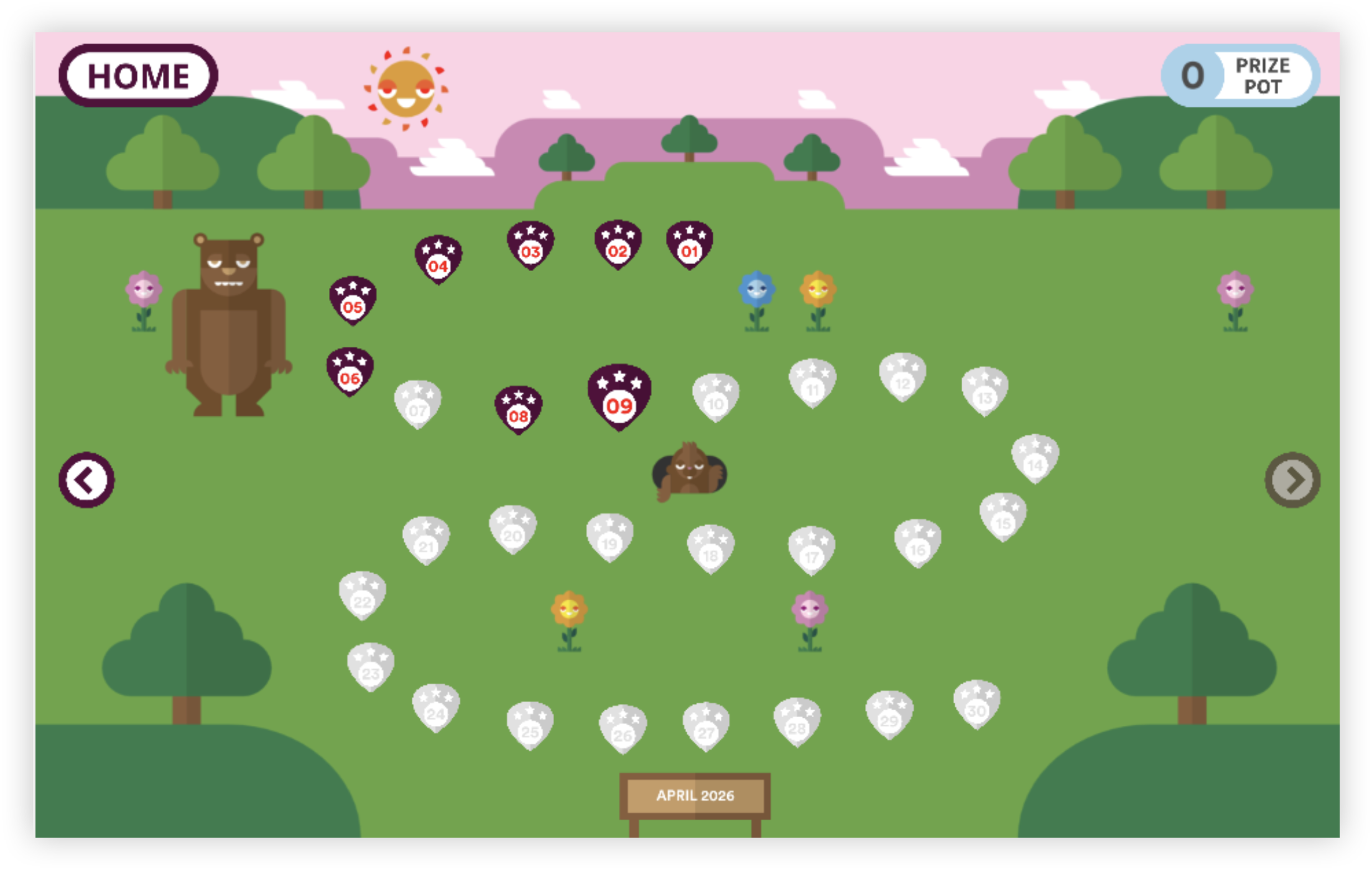 On the questions screen you will be able to see the questions available for the current month. The screen will automatically zoom into the current date